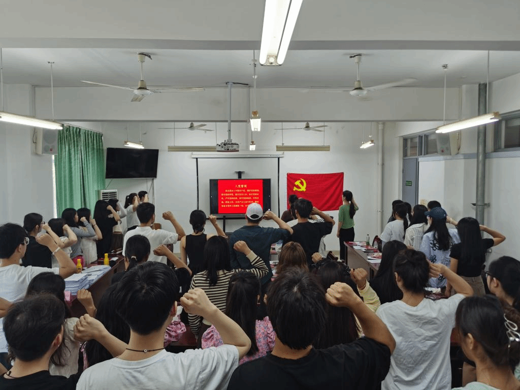 全体党员面向党旗、高举右拳,庄严宣誓,用铿锵有力的声音,重温入党誓词,表达了对党的无限忠诚和为共产主义奋斗终身的坚定决心。