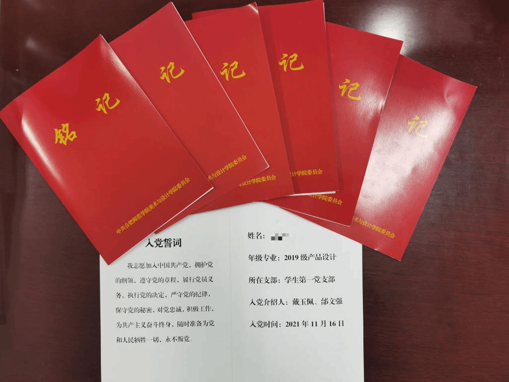 沙渺、张永伟为全体毕业生党员颁发印有每一位毕业生党员入党时间、入党介绍人及离校前党组织关系归属的《铭记》手册。