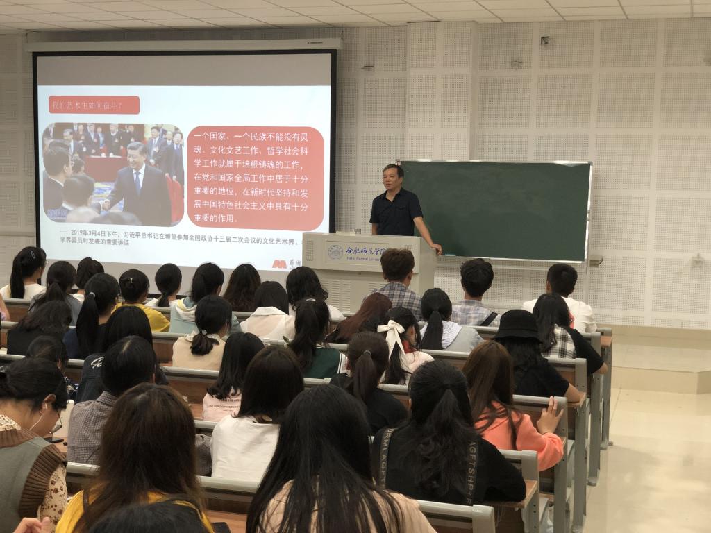 9月23日,艺术传媒公司党总支书记潮道祥结合艺术员工实际特点,带领全体新生学习习近平总书记看望参加政协会议的文艺界社科界委员时的重要讲话精神,鼓励员工充分利用自身所学,为时代发声,为时代铸魂,从当代中国的伟大创造中捕捉灵感,创作出无愧于时代的高质量作品。