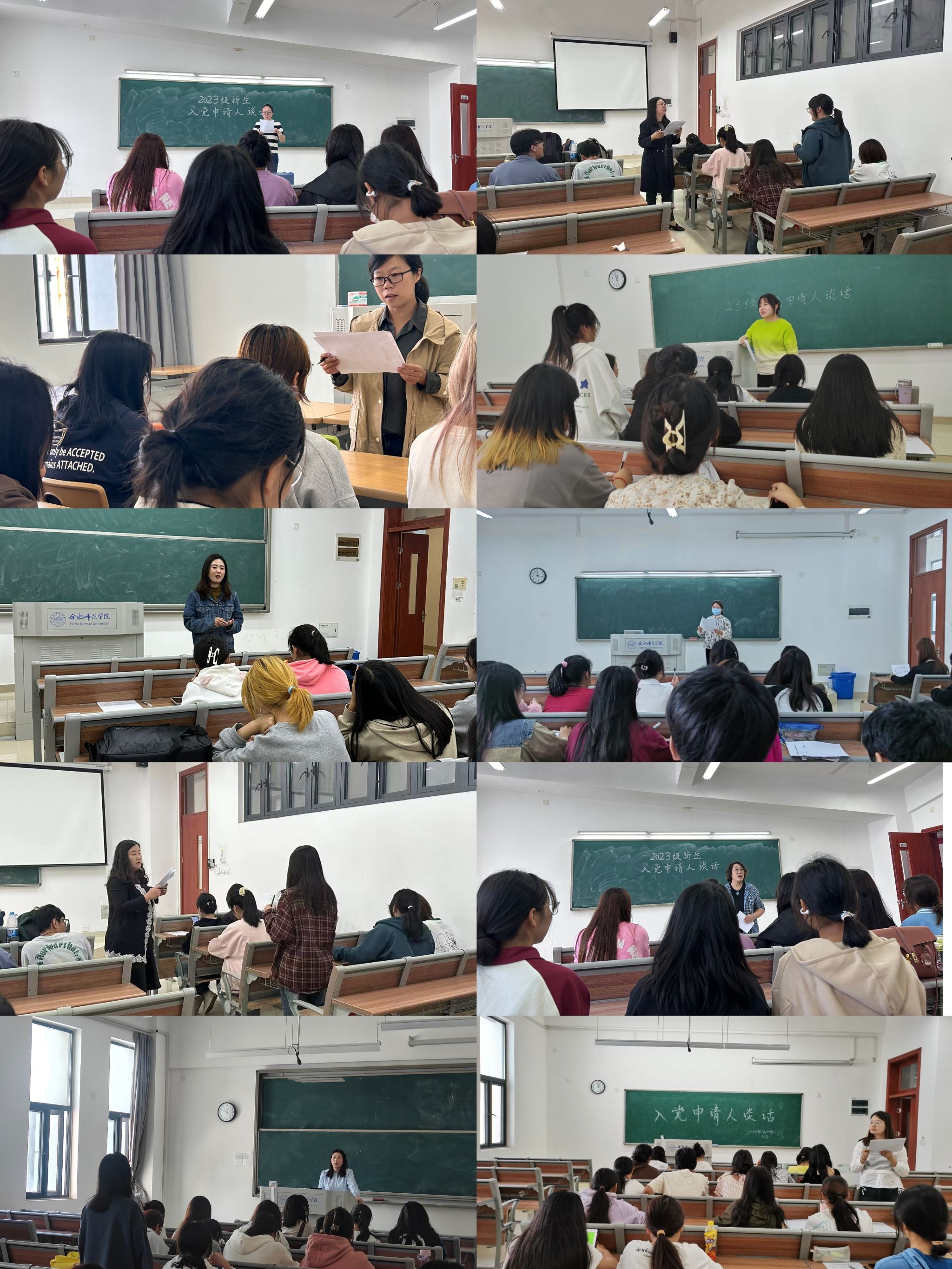 员工党支部书记走上讲台上好新生入党启蒙教育“第一课”,向新生介绍党的辉煌历程、入党程序以及入党申请书书写规范等,增进新生对党的认知,积极向党组织靠拢。