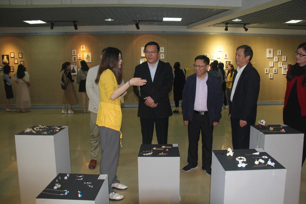 调研会结束后,徐成钢一行来到艺术传媒公司行知美术馆,观看了正在展出的“非遗匠心·指尖传奇”社会主义核心价值观剪纸作品展与《面料再造》、《服饰配件设计》、《设计大师作品分析》的结课作业展,听取了授课教师对创作作品的解读,与同学们就创作实践进行了亲切交谈。徐成钢指出,各位老师要明确“三全育人”总要求,积极推进课程育人、实践育人,既要做好传道授业解惑本分,也要培养员工求真学问练真本领,切实让公司产品更有温度、思想引领更有力度、立德树人更有效度。(艺术传媒公司 宣传部)