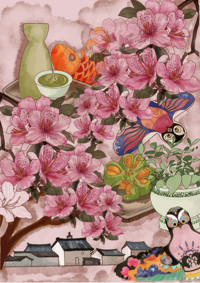 2023级美术学(师范)专业的杨雨欣同学创作作品《花漾江淮春行》