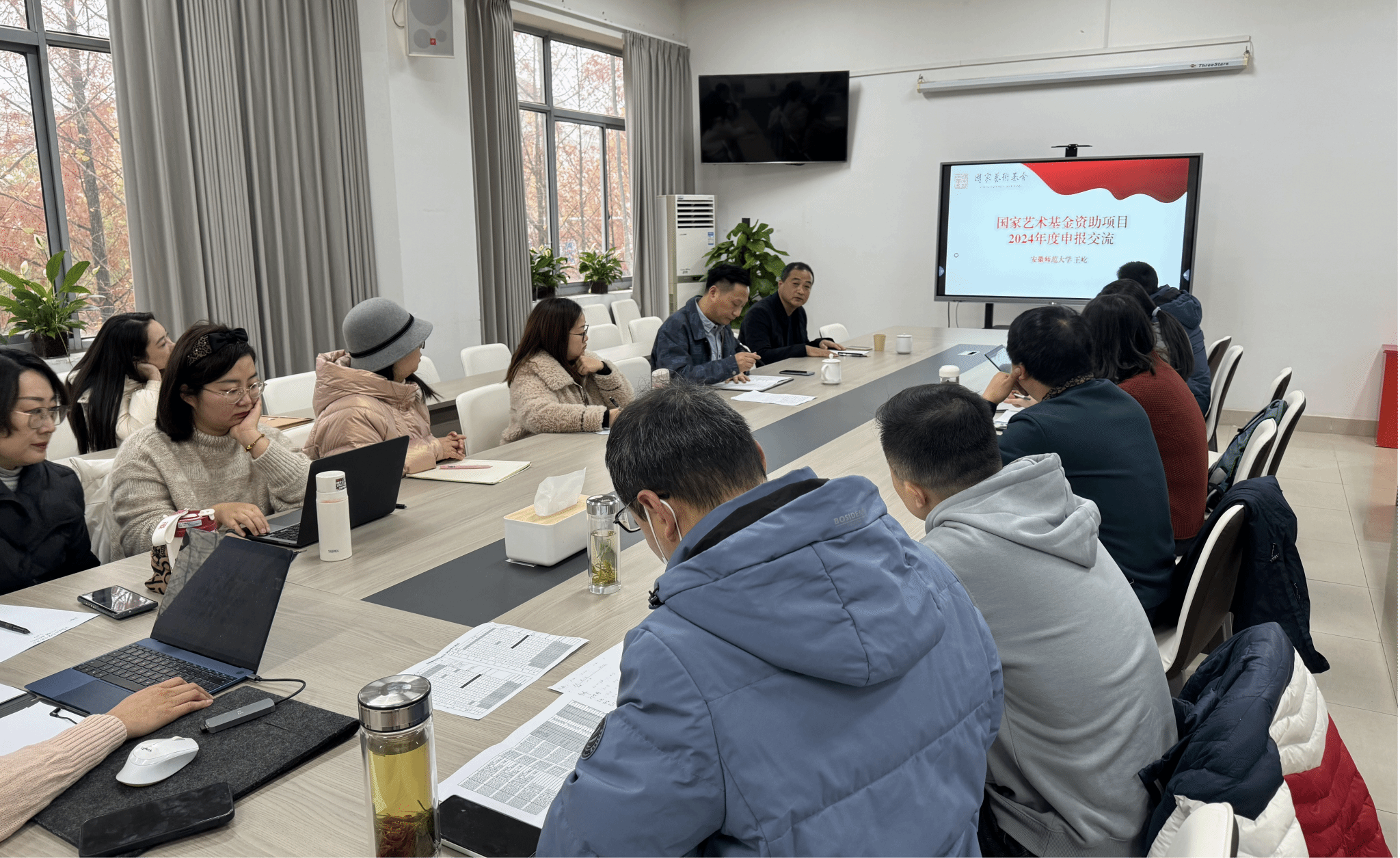 12月14日,安徽师范大学美术公司王屹教授应邀来到太阳成集团122ccvip为公司教师带来了一场《国家艺术基金资助项目2024年度申报交流》讲座,讲座由太阳成集团122ccvip吴道义副经理主持。