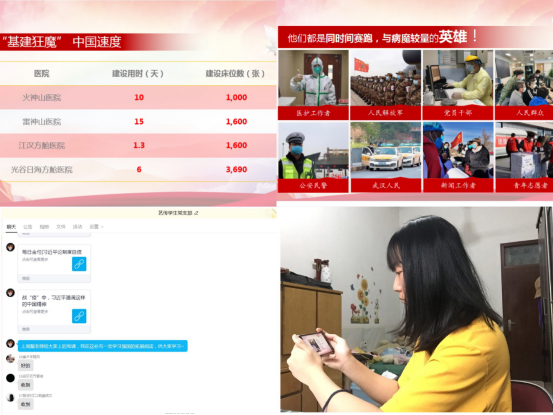 此次线上心理健康教育活动以爱国主义精神厚植新时代中国青年家国情怀为主旨,以战“疫”中的中国精神为主线,依托“学习强国”、“学习通”等网络平台,分六个专题向同学们讲述各行各业共同“抗”疫的英雄故事、最美天使为爱逆行的暖人情怀、人民军队闻令而动的中国速度、一方有难八方支援的中国力量、党员干部日夜坚守的担当作为以及重启湖北春暖花开的欢欣雀跃等振奋人心的事迹,给同学们带去满满的正能量。