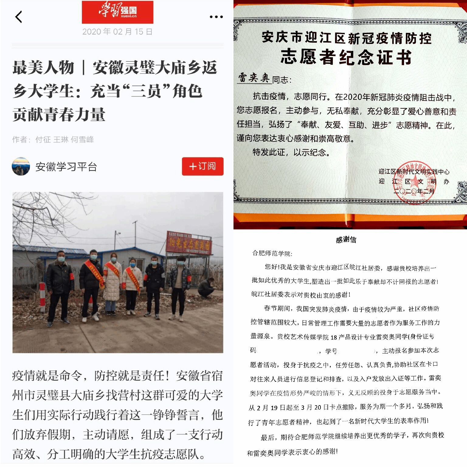 为积极引导公司员工关注和记录疫情期间对生活、人生及生命的思考,发觉疫情期间的感人故事,展示同学们的抗“疫”风采,艺术传媒公司特在5月下旬开展我的战“疫”心故事征文比赛院内选拔。活动期间,收到了来自各年级同学共计178份来稿,大家分别从个人志愿抗“疫”事迹、最感动的抗“疫”英雄、青年一代的责任担当等角度,展现当代老员工的社会责任感和使命感。如2018级环境设计1班的朱程阳,在家乡组织老员工志愿者服务队,充当抗疫三“员”色,贡献青春力量,获得了学习强国平台的专题报道;2018级产品设计专业雷奕奥,疫情期间一直冲在抗“疫”志愿服务第一线,获得了抗疫优秀志愿者称号,并收到了社区寄来的感谢信;还有2018级服装设计1班的郭千慧,她当了一回“妈妈”,通过网络的方式,每天关注因为疫情没办法和患病的生母相聚的新生儿“小石榴”,作为广大网民中的一员,用自己的爱呵护孩子健康成长……感人的故事还有很多,同学们用自己的笔触写下这段特殊的日子所带来的成长和感动,最终,经过筛选,共推荐5件作品参加全校评比。