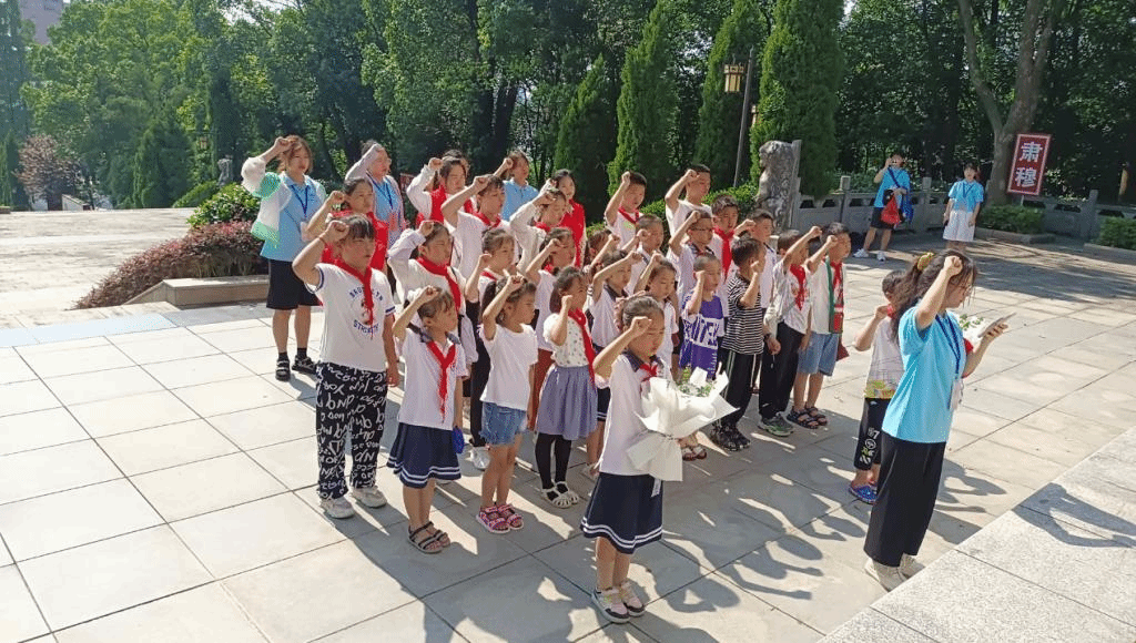 7月中旬,在征得小学员家长同意并遵守疫情防控要求的前提下,“小先生”们带领小学员们参观“红源潜山”革命历史陈列馆、烈士事迹陈列馆,了解红色文化和革命文化,并开展潜山烈士陵园扫墓活动,在人民英雄纪念碑前庄严宣誓,缅怀英雄。