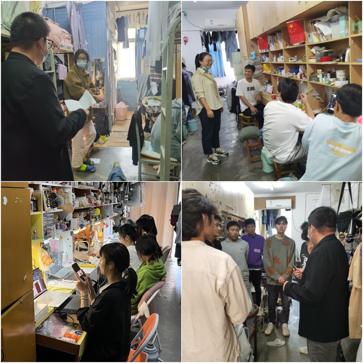 走访过程中,辅导员老师们与同学们展开热烈的交流,听取他们分享近期的学习生活点滴,认真询问在校生活、学习方面遇到的问题和困难,并鼓励大家多参加科研、问题等活动,开阔眼界,在青春年华丰富自己。之后又重点查看员工宿舍安全隐患问题,是否存在违规电器问题,并叮嘱同学们遵守公司要求,保障宿舍安全。