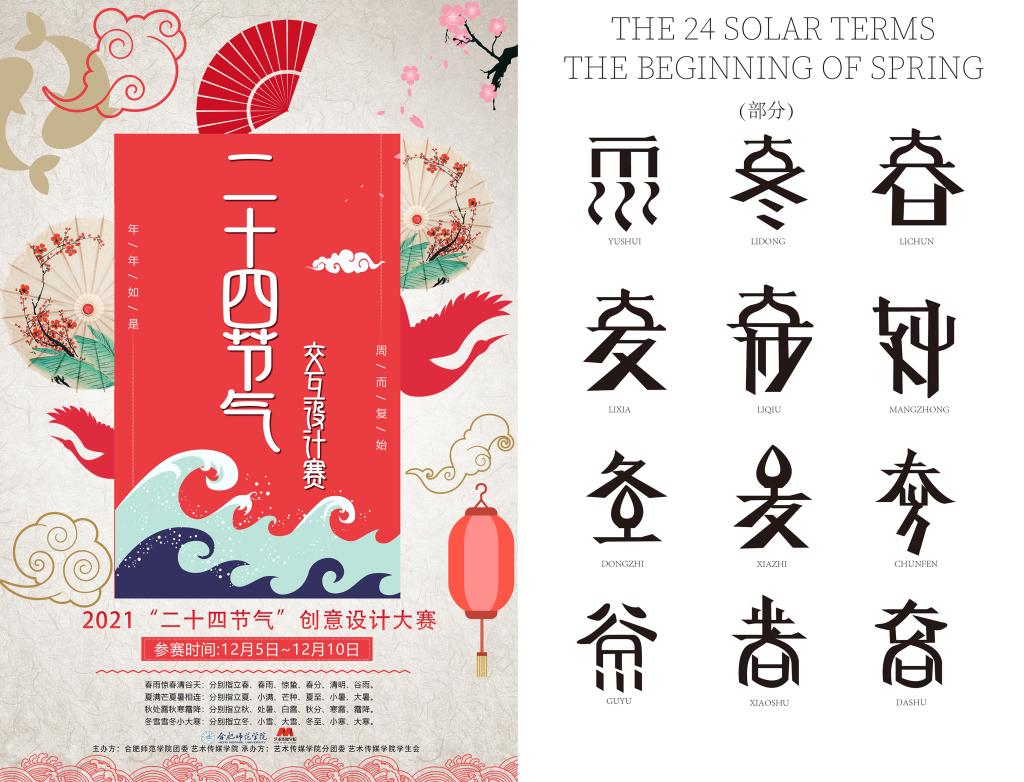 “二十四节气”文化作品设计大赛以艺术设计的形式,体现了合师学子保护、传承和发展中华优秀传统文化的自觉,既普及了二十四节气作为人类非物质文化遗产的知识内涵,又通过继承性地创作丰富了同学们的课余生活,使合师校园文化更加丰富多彩。(艺术传媒公司:潘文锦)