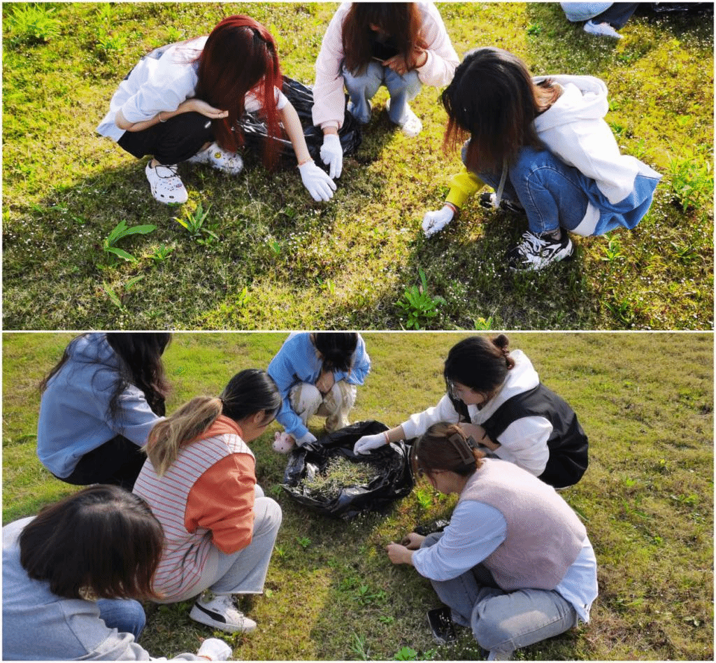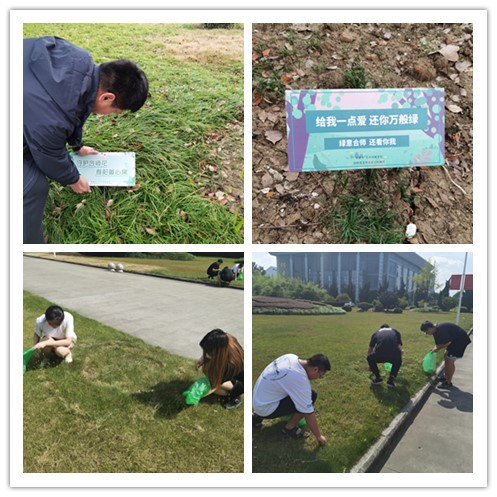 滨湖校区划分区域包干绿化实践场地,分配到班级,形成班级绿化实践周让员工全员融入到校园环保工作中。锦绣校区同学除草拾捡垃圾,同时树立同学们自己设计的爱护环境的绿色标语,提醒全校的同学保护环境,爱护草木。同学们利用课余时间,走出网络,走出寝室,到校园包干的绿化场所,进行校园绿化清理,工作井然有序,任务顺利完成。