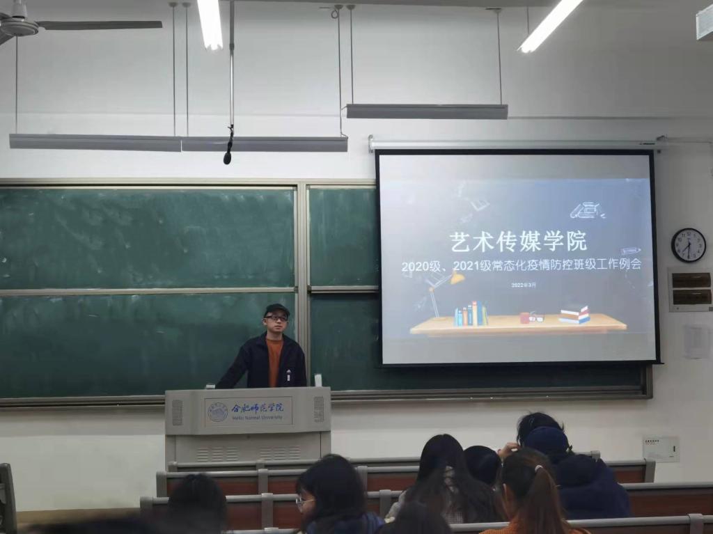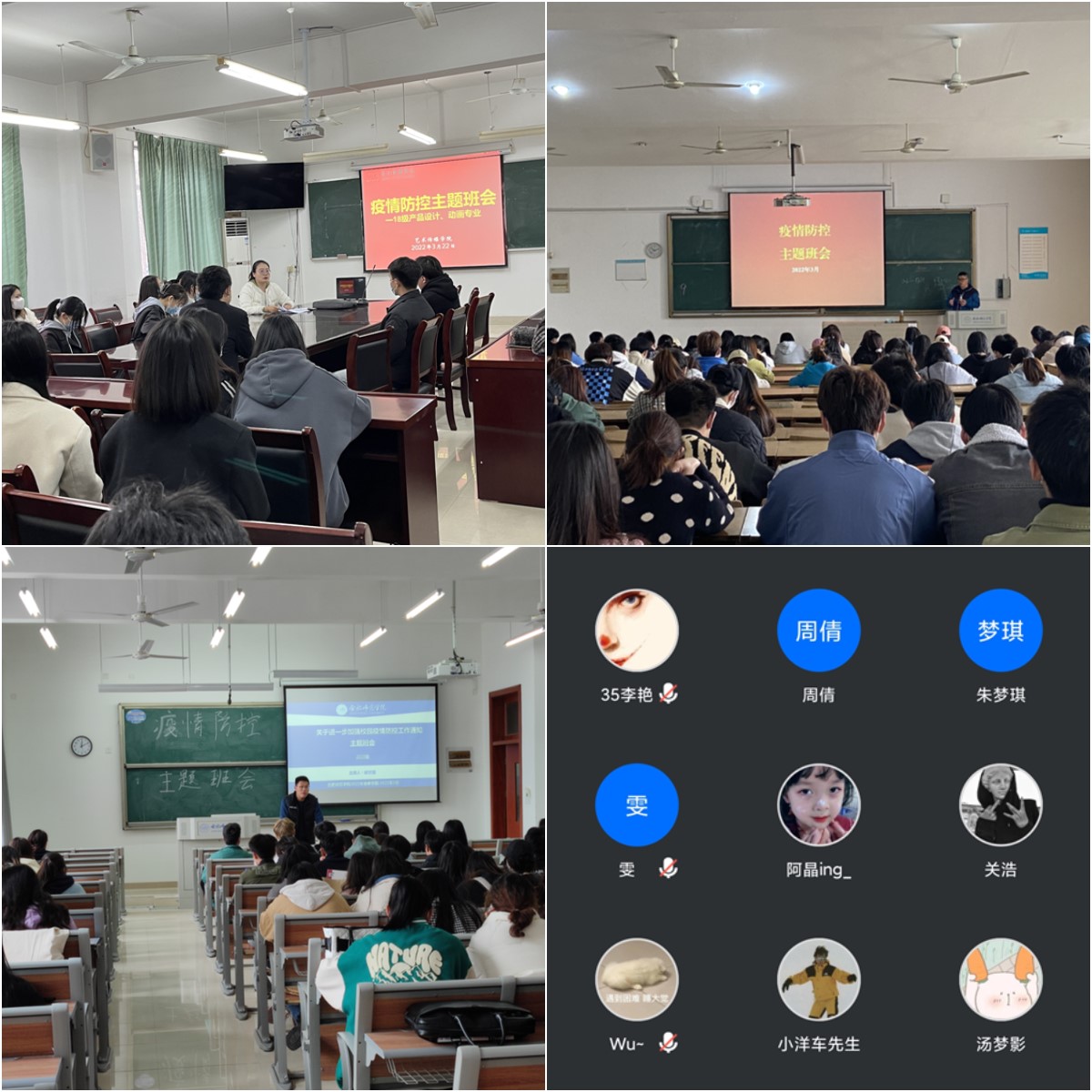 为进一步做好校园疫情防控工作,引导员工正确认识当前疫情形势,3月18日-3月25日,艺术传媒公司各年级辅导员采用线上线下的方式,分别在锦绣、滨湖两个校区召开疫情防控主题班会。