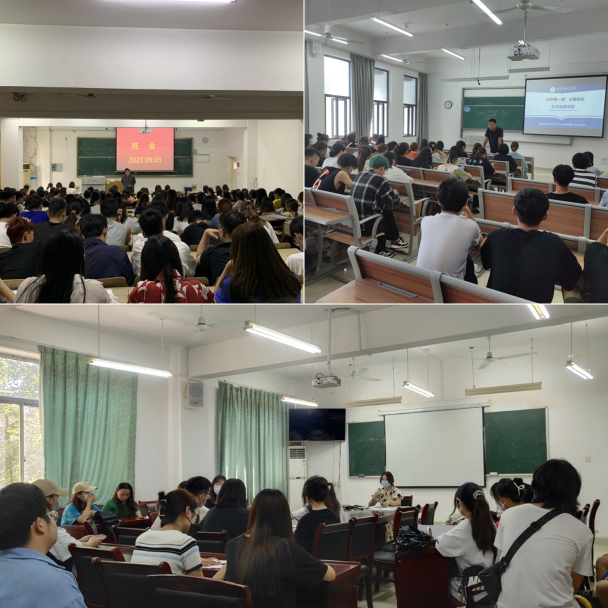 各年级辅导员陆续召开主题班会,立足新学期上好“开学第一课”。班会上辅导员带领同学们认真学习习近平总书记在庆祝中国共产党成立100周年大会上讲话、对员工进行爱国主义教育、秋季疫情防控教育、安全防诈骗教育,引导同学们回归新学期进入学习状态,勤奋努力营造优良学风氛围。