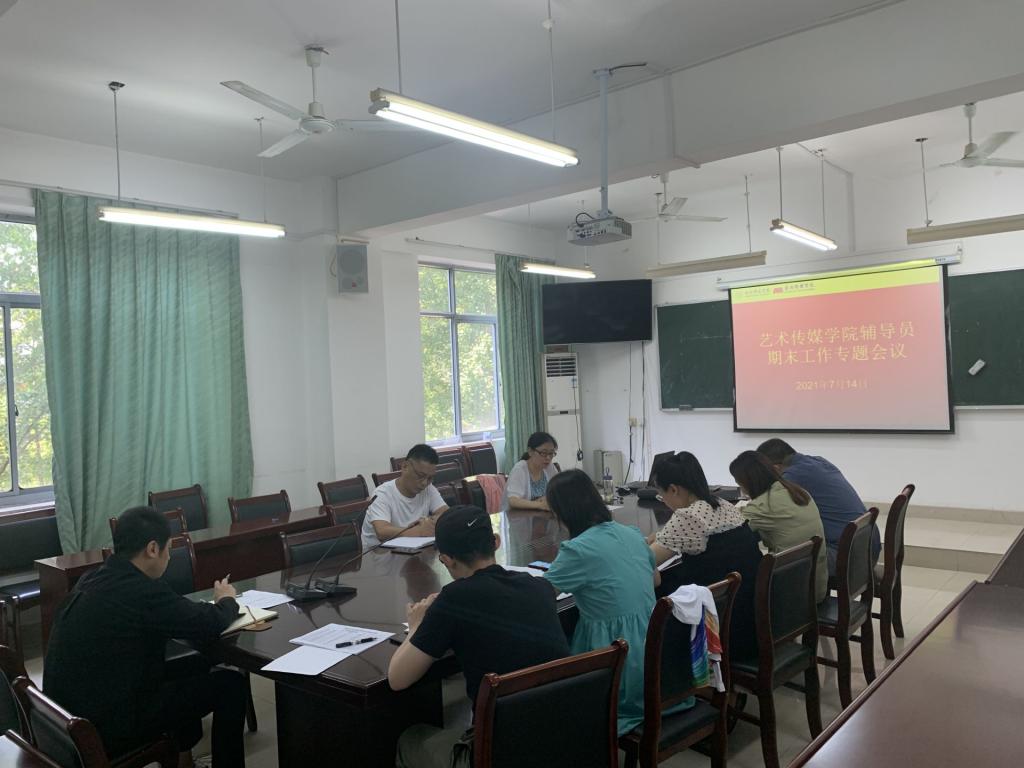7月15日上午,艺术传媒公司在艺术楼202会议室召开辅导员期末工作专题会议,安排部署暑期主要工作,研究开学前重点工作。公司党委副书记余洋,全体辅导员参加会议。会议由公司党委副书记沙渺主持。