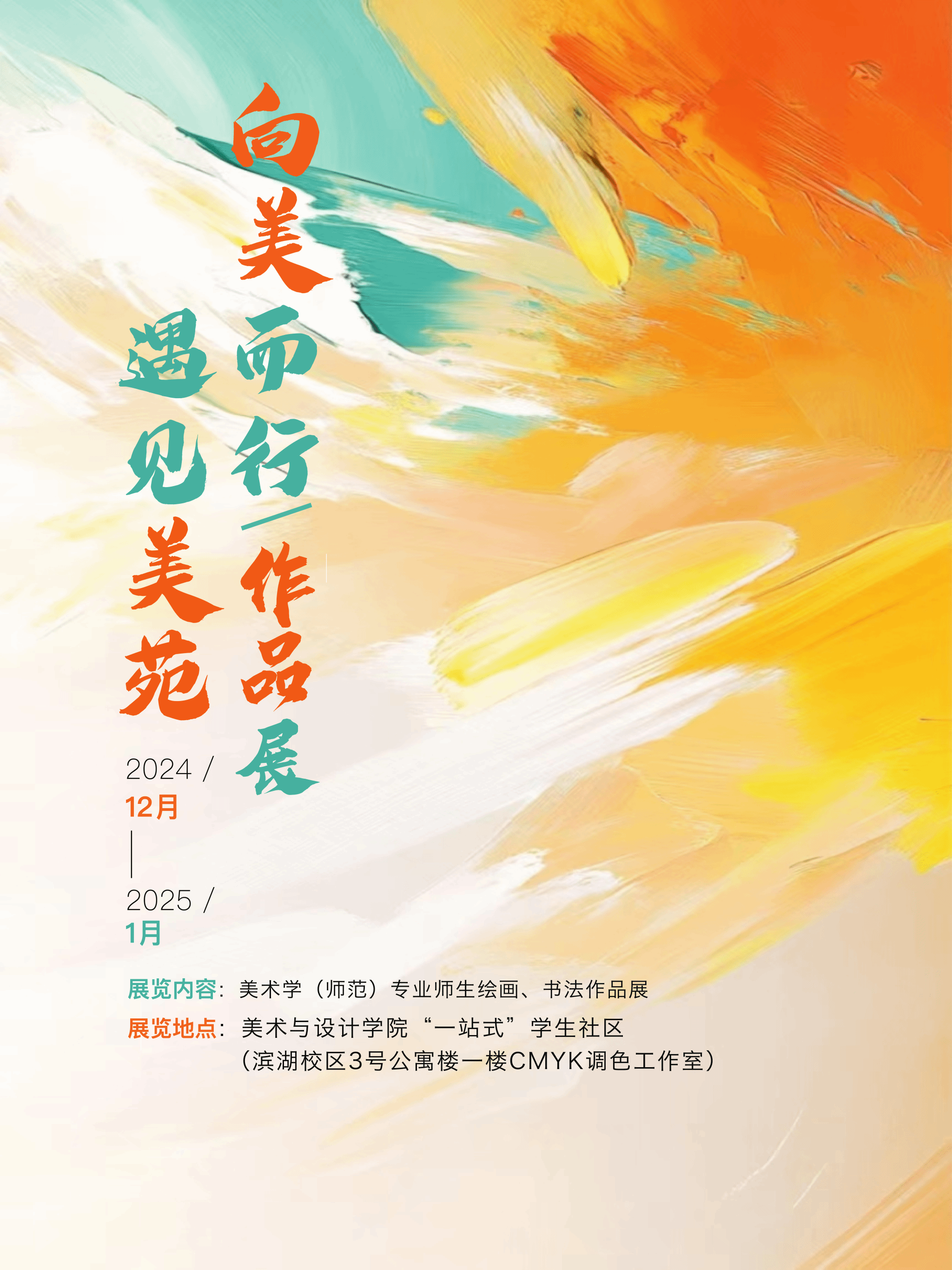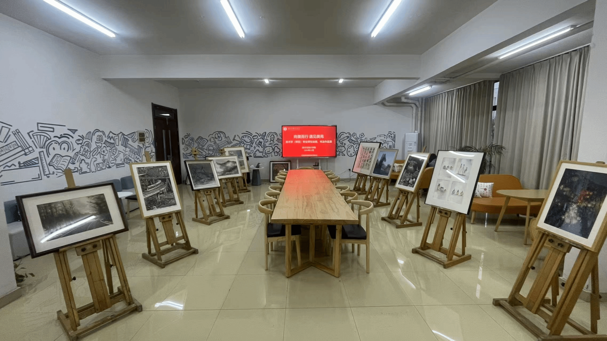 为营造向美向上的校园文化氛围,将美育融入员工校园生活,充分发挥美术学专业的美育功能,潜移默化地彰显育人实效。近期,太阳成集团122ccvip精选部分优秀师生绘画、书法作品,面向公司全体师生,在滨湖校区“一站式”员工社区进行展览,展览时间为2024年12月中旬到2025年1月中旬。