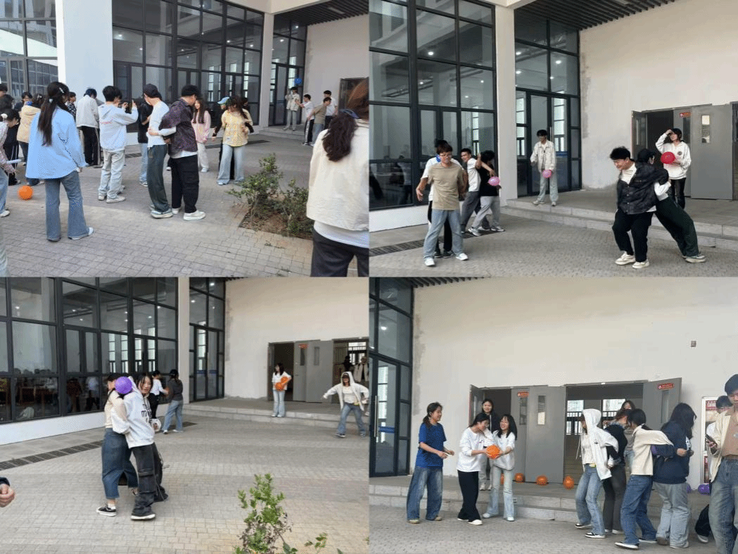 活动现场气氛热烈非凡,各班参赛选手两两一组,背靠背紧紧夹住气球,投入到紧张激烈的接力赛跑中。在比赛过程中,选手们不仅要小心翼翼地确保气球不脱落,还要努力协调彼此的步伐,向着终点全力冲刺。有的小组配合默契十足,步伐整齐划一,一路顺畅地冲向前方;而有的小组则状况频出,气球不慎滑落,引得周围围观的同学阵阵欢笑。比赛进行到中途,许多班级展现出独特创意,设计了响亮的口号和有趣的互动动作,巧妙地将竞赛元素与娱乐氛围相融合,现场洋溢着蓬勃的青春活力。