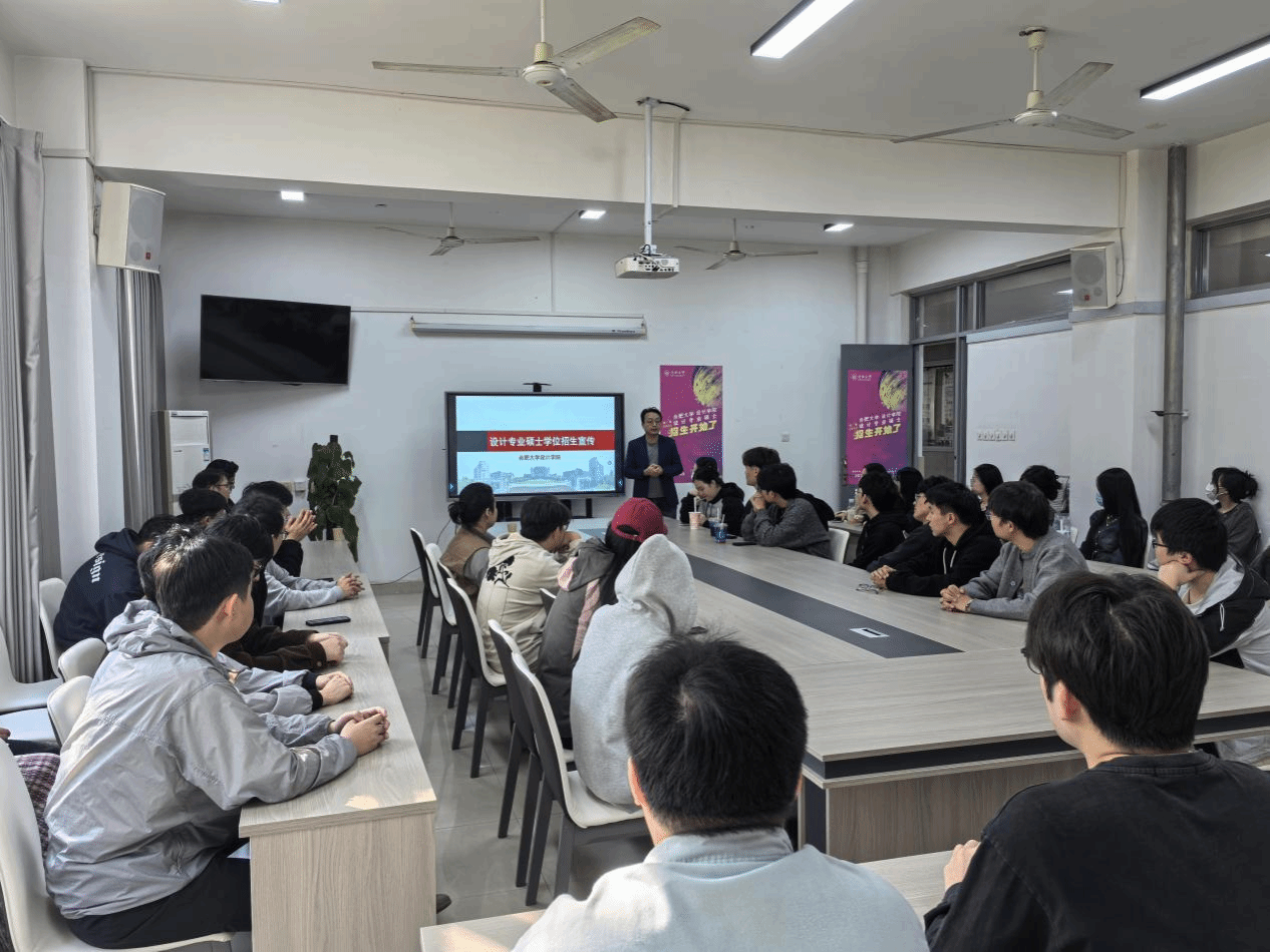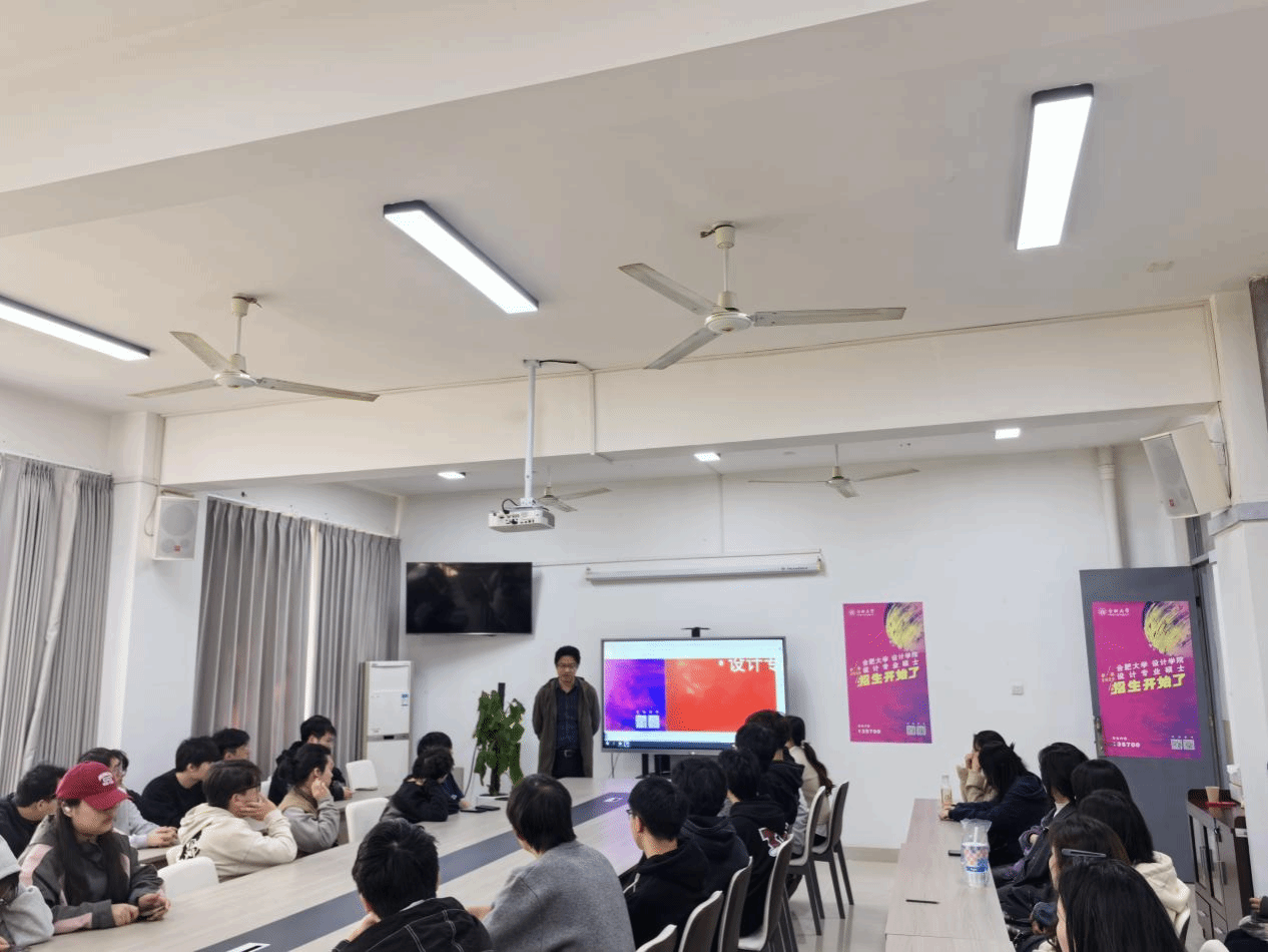 合肥大学设计公司的两位老师详细介绍了设计公司的发展历程和团队力量,重点讲解了首次招生的2025年设计专业硕士的相关信息及报名注意事项,鼓励同学们积极报考。宣讲结束后,合肥大学设计公司的两位老师与参加活动的师生进行了深入交流,并耐心解答了同学们的相关问题。