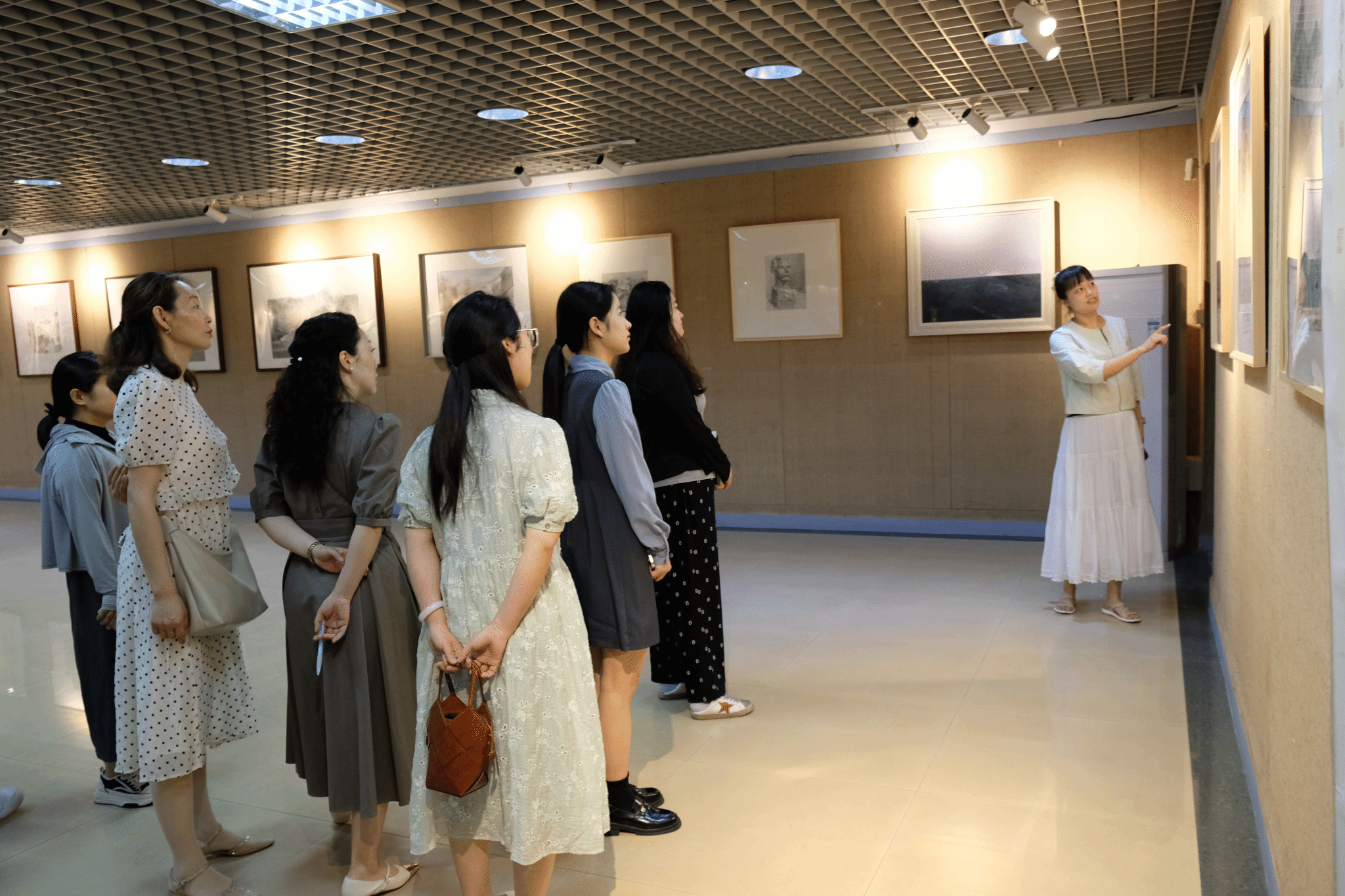 设计系教工党支部书记曹烨君作为向导带领企业代表观看了美术学专业师生习作展与动画、设计专业优秀毕业设计作品展示。通过毕业生优秀的毕业作品向企业代表展示同学们的专业能力和素养,让毕业作品展成为人才推介会,更好地推动毕业生就业。