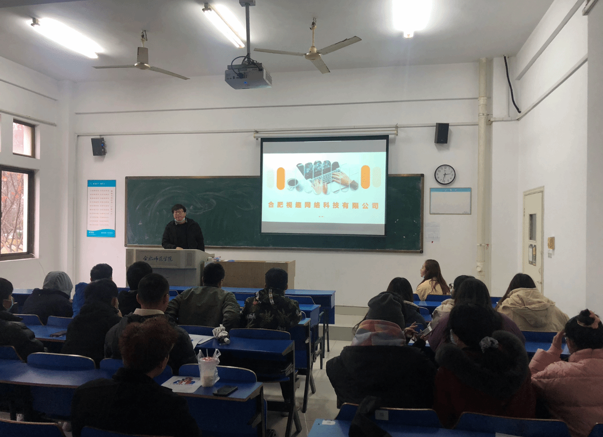 为提高毕业生的就业意识,了解市场需求,积极推进校企联动促就业。艺术传媒公司于12月2日在博约楼106教室举办了合肥视趣网络科技公司招聘宣讲会,本次招聘会由合肥视趣网络科技公司技术骨干汪康俊主讲,艺术传媒公司2017级部分毕业生参加了本次招聘会。