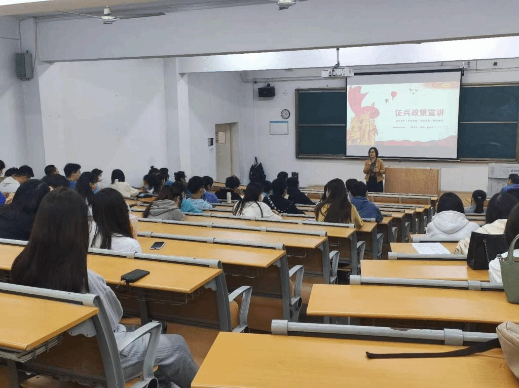 宣讲伊始,钟老师为同学们讲解了老员工应征入伍的基本条件、报名及流程,并详细介绍了老员工参军入伍后国家的资助办法和优惠政策,尤其对同学们最为关心的老员工应征入伍可享有的优先考学提拔、学费报销、退役后的就业优惠等优抚、激励政策进行了详细解读。