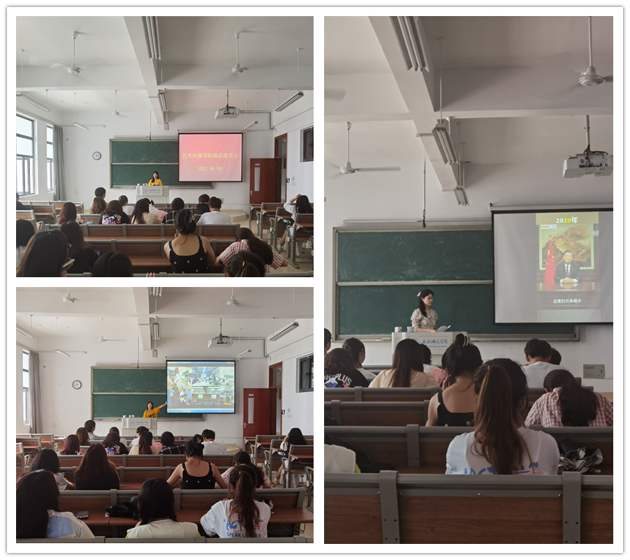 为加强典型选树,引导受助员工自立自信自强,更好地促进学风建设,6月9日下午艺术传媒公司在滨湖校区博学楼B309室举办励志报告会。报告会邀请公司2019-2020学年国家奖学金获得者高芮雪同学和国家励志奖学金获得者沈扬同学进行分享,公司20级受助员工参加报告会,报告会由20级辅导员邰文强老师主持。