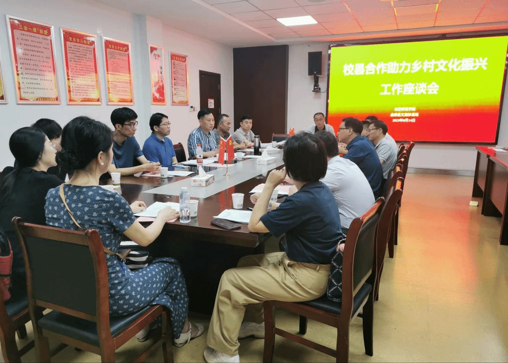 为深化与金寨县花石乡、南溪镇、古碑镇的合作,调研组一行在金寨县文化中心参加了“校县合作助力乡村文化振兴工作座谈会”。会上与金寨县文化旅游体育局副局长张静辉、文化馆馆长江劲松等人围绕校县合作助力乡村文化振兴的合作帮扶主要内容进行了细化研讨。