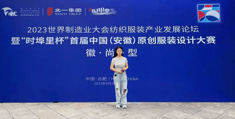 本网讯 9月20日至23日,2023世界制造业大会纺织服装产业发展论坛暨首届中国(安徽)原创服装设计大赛在合肥举办。公司学子作品《百里行松声》荣获最佳创意奖,该作品由2020级服装与服饰设计专业胡倩倩同学完成,胡冰老师指导。