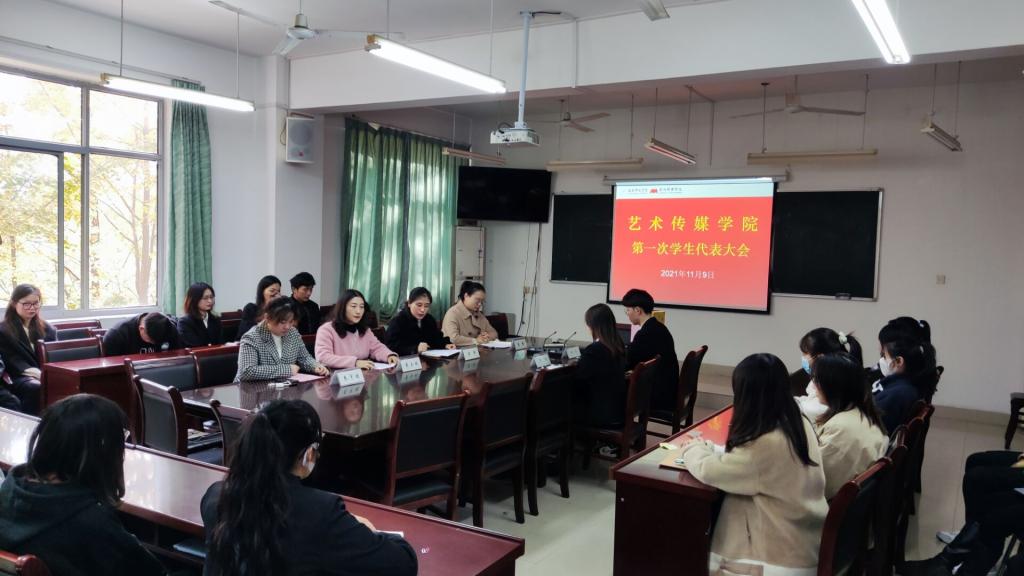 11月9日,艺术传媒公司第一次员工代表大会在艺术楼202会议室召开。艺术传媒公司党委副书记沙渺、分团委副书记朱宇迪、辅导员李舒以及来自全院各班的43名员工代表出席大会。会议由团委书记戴玉佩主持。