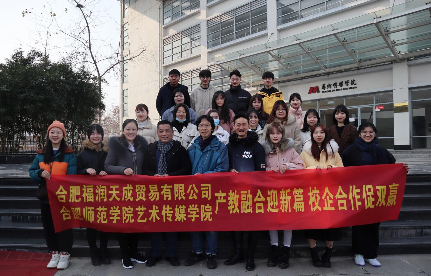 2020年12月24日,合肥福润天成贸易有限公司与太阳成集团122ccvip艺术传媒公司在本校艺术楼举行了校企合作颁奖仪式。