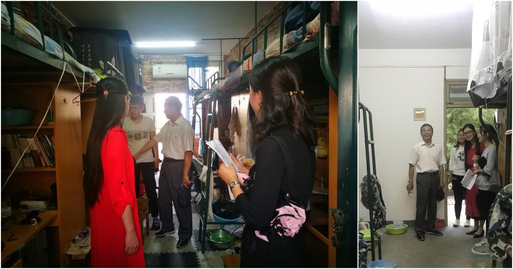 在检查中,老师们一边和同学亲切交谈,一边查看宿舍有无安全隐患。本学期,艺术传媒公司将继续对宿舍进行定期检查,营造一个安全、舒适的生活环境。(艺术传媒公司:戴玉佩)