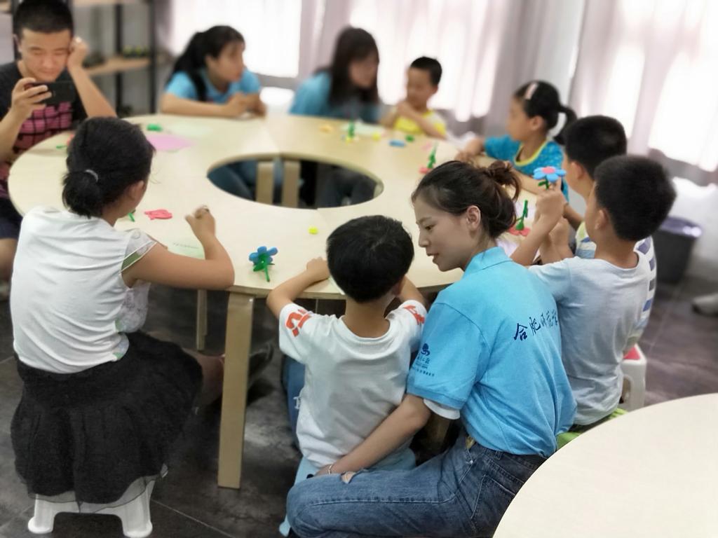 7月7日下午,学堂正式开班。“小朋友们,今天我们上的第一堂课是手工课”。首次课程中,小先生通过邀请小朋友上台自我介绍的方式将孩子们引入课堂,教大家用超轻黏土制作感恩花。小先生们耐心指导,不时对孩子们表扬鼓励,使小朋友们干劲十足。孩子们认真专注、细心制作,呈现出一副副欢乐场景。课程的最后,孩子们还将自己制作的感恩花配上写满祝福的卡片,送给自己的父母和同学。